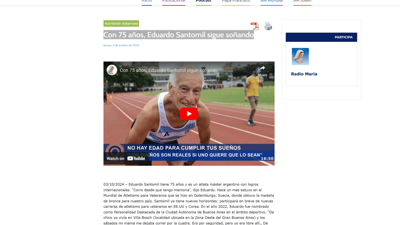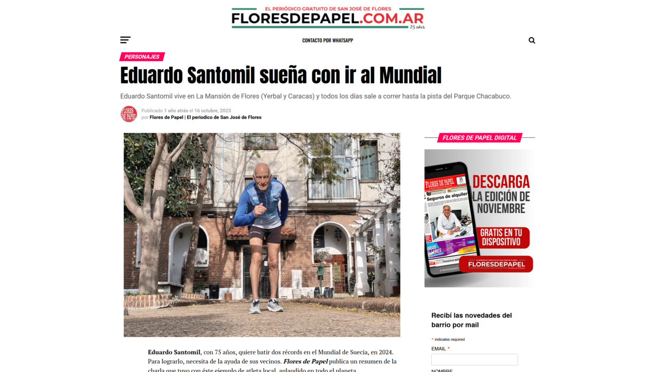 Eduardo Santomil se prepara para participar del Mundial de Atletismo para Veteranos 2024.
