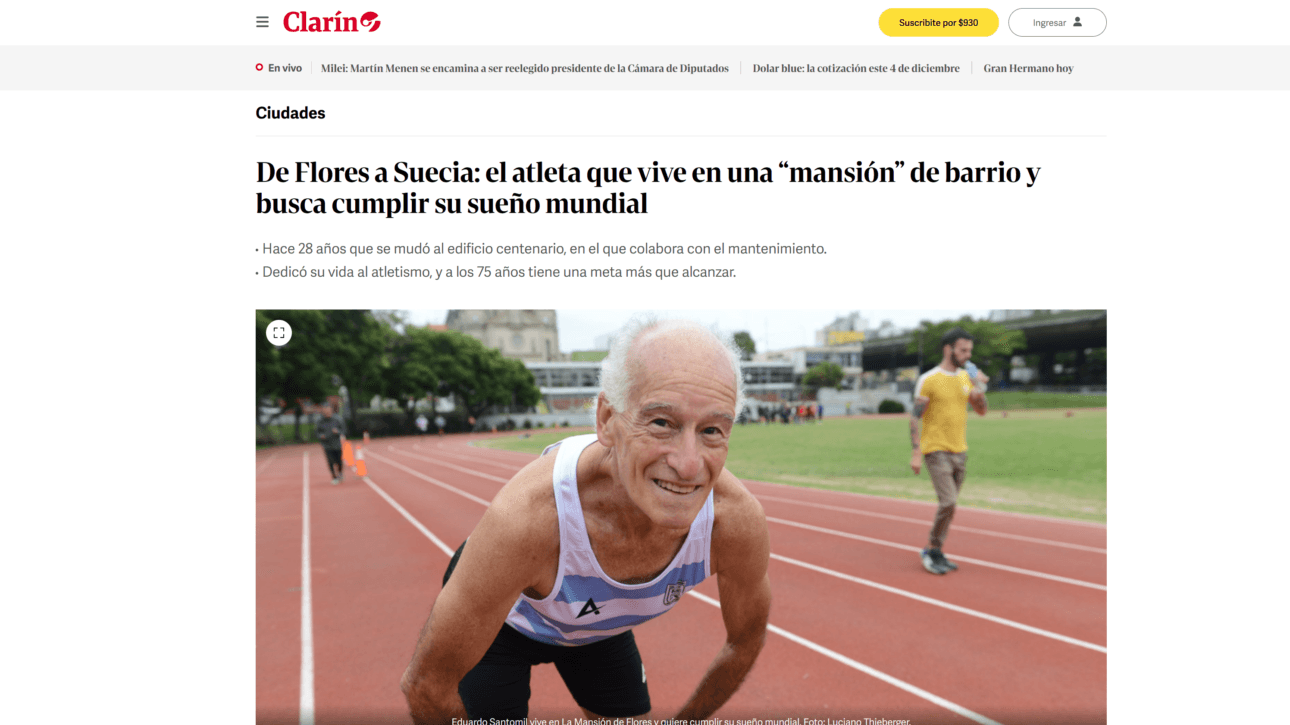 Eduardo Santomil vive en La Mansión de Flores (Yerbal y Caracas) y todos los días sale a correr hasta la pista del Parque Chacabuco.